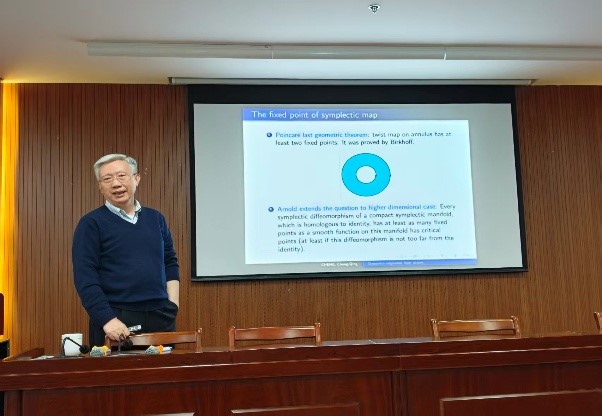 4月14日下午,著名数学家、南京大学原副校长、江苏省数学学会理事长程崇庆教授应蜜桃视频 邀请、走进陈建功大讲堂,并为蜜桃视频 师生做题为“Dynamics originated from Nature”的精彩学术报告。学院党委主要负责人、动力系统团队和师生代表等参加,陈建功高等研究院常务副院长储继峰教授主持报告会。
