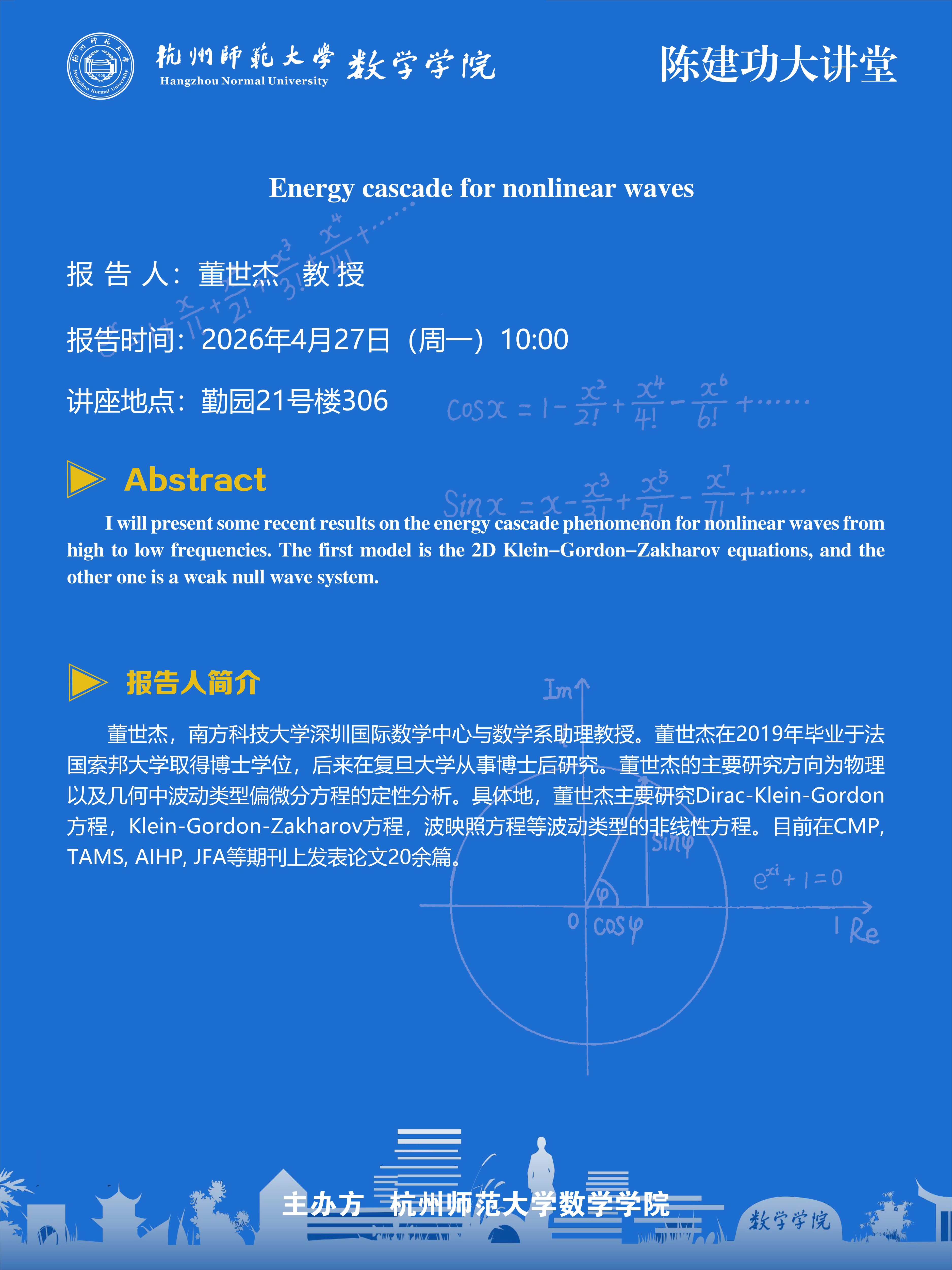 陈建功大讲堂(2026-17):Energy cascade for nonlinear waves